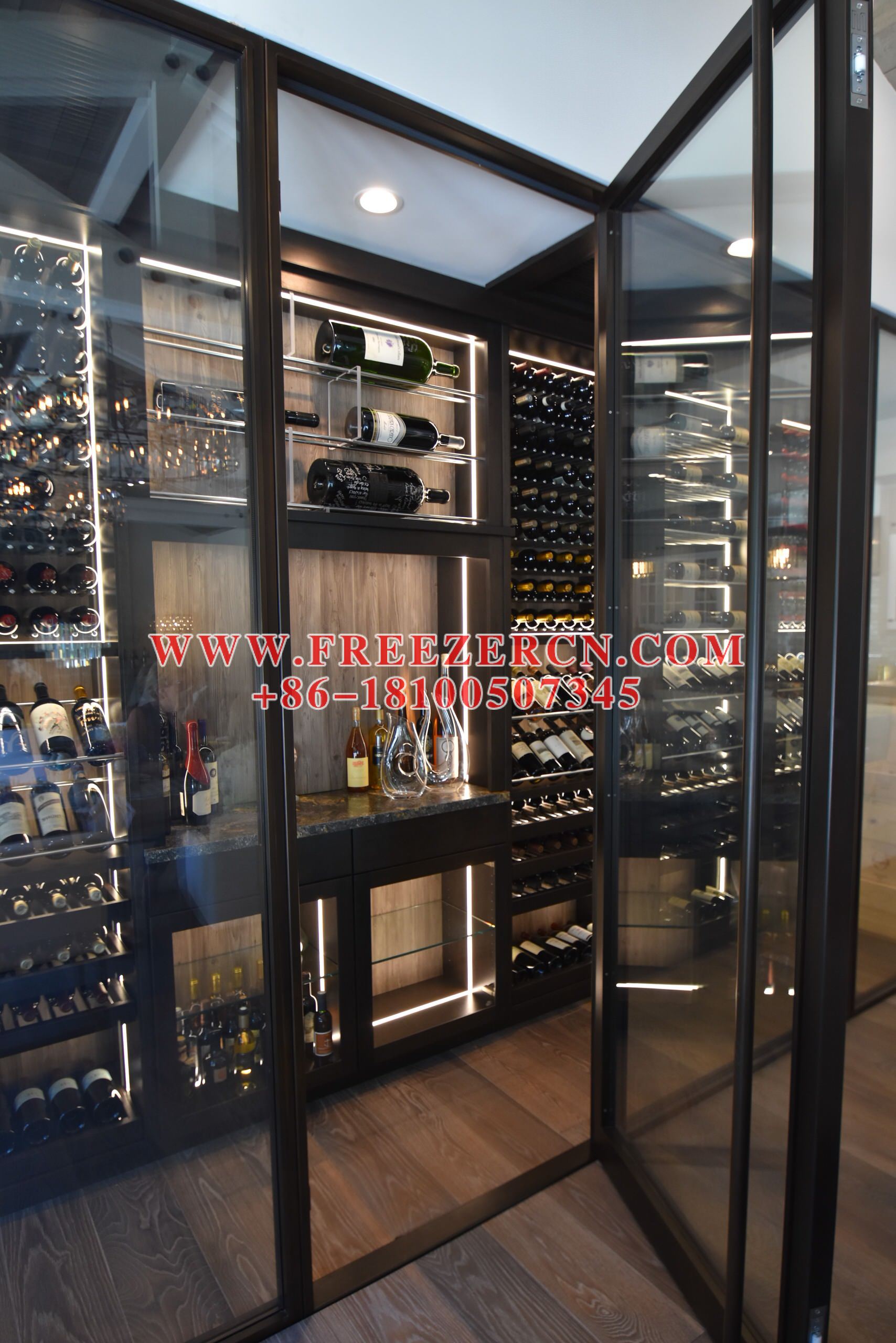 负一楼恒温恒湿酒柜定制玻璃门酒柜