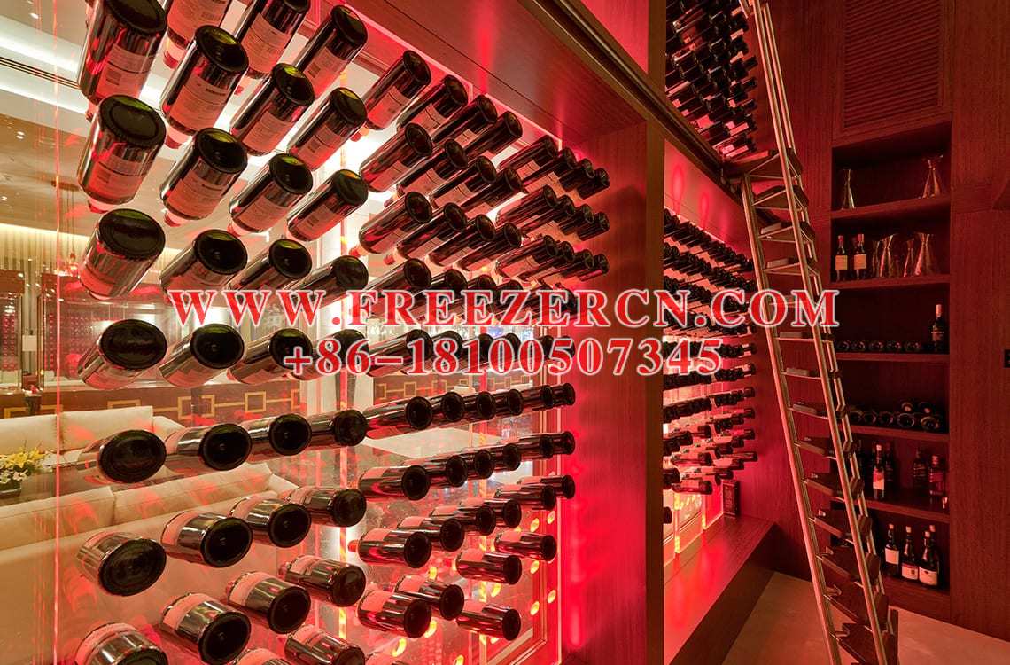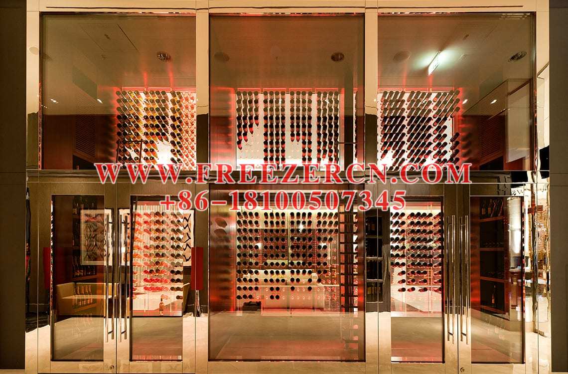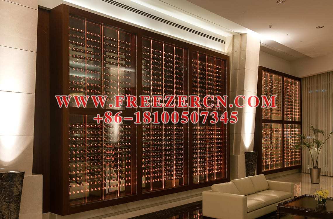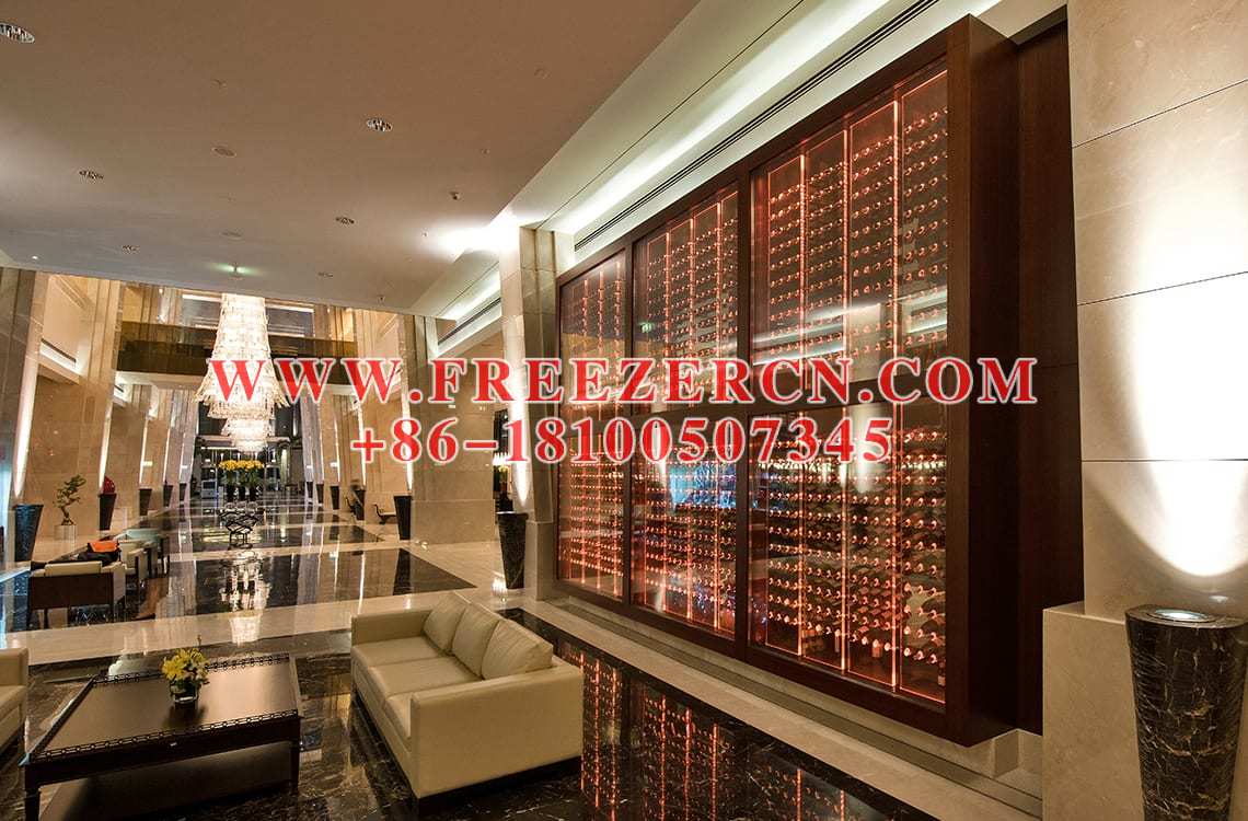 万豪酒店酒窖。该酒窖位于酒店的主入口处,大厅和 Steak House Restaurant 之间,就像是欢迎客人的标牌。大多数情况下,用大量酒瓶装饰的且高度如此之巨的玻璃墙通常仅用作展示之目的,无法发挥有效的储酒功能,但是这却是一个能让人进入的酒窖,有一个 5 米高、7 米宽的隔热玻璃立面。酒窖能容纳1,860 瓶葡萄酒,分为两个温度隔间,可按照饮用温度,分开存储不同类型的葡萄酒。